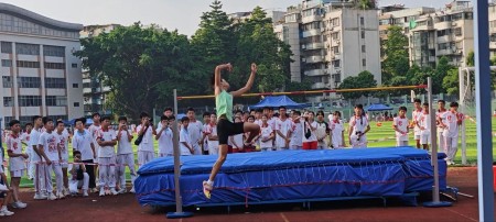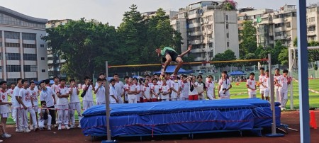 本届体育节捷报频传,其中初三14班赖天同学在初中体育节田径运动会跳高比赛中以1.90米的成绩打破了尘封26年的1.89米初中男子跳高记录,成为体育节上最令人振奋的喜讯!