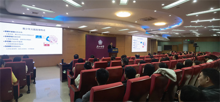 为助力家长科学应对孩子的青春期问题,1月9日晚,广州中学家长学校“青春必修课”在五山校区温情开讲。本次讲座由学生发展中心主任张玲主持,主讲专家是广州医科大学精神卫生学院副院长、医学博士、博士生导师,广州市心理危机研究与干预中心主任,中国心理卫生协会危机干预专委会主任委员,国家卫生与健康委员会卫生科普专家周亮教授。他以“理解•共情•成长—用脑科学点亮亲子关系”为主题进行了深入分享。初中部500多名家长聆听了本次讲座。
